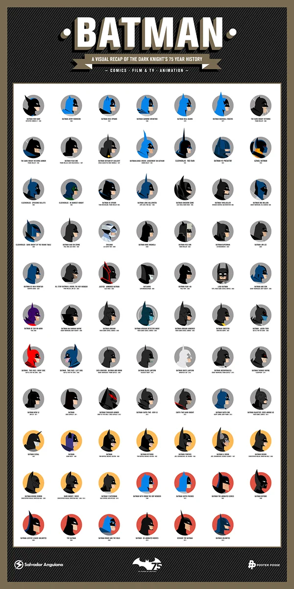 To celebrate Batman’s 75th anniversary, an artist created a poster featuring profile illustrations that represent key points in The Dark Knight’s history.