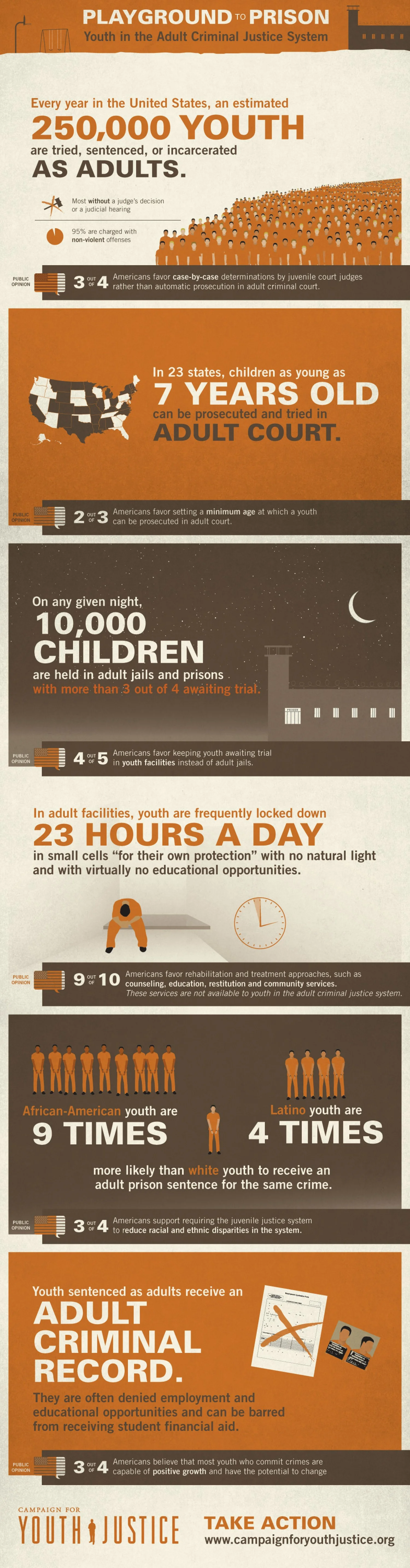 Shocking statistics about the number of youth in the adult criminal justice system.